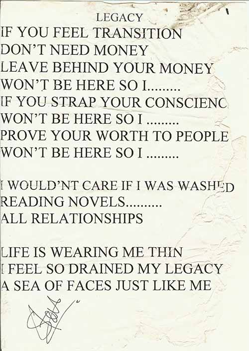 | 19:29, 6 May 2015 | LegacyLyrics.jpg (file) | 85 KB | Lyric sheets to Legacy printed and used on stage by Paul Draper. Signed by Stove on front, and the other band members on the rear. | 1 | |