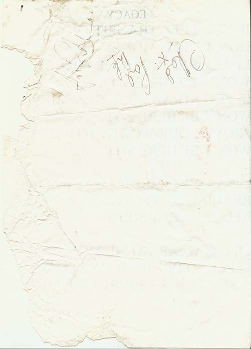 | 19:31, 6 May 2015 | LegacyLyricsReverse.jpg (file) | 33 KB | Back of the lyric sheets to Legacy printed and used on stage by Paul Draper. Signed by Paul Draper, Dom Chad, and Andie Rathbone, signed on the front by Stove. | 1 | |