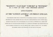 | 19:21, 6 May 2015 | AstoriaNMEPremShowsDisclaimer22011999.jpg (file) | 76 KB | Disclaimer poster from the ''NME Premier Shows'' for attendees of the gig. | 1 | |