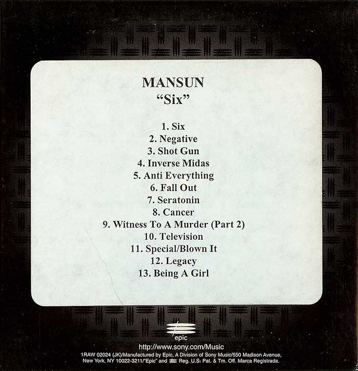| 21:23, 1 September 2015 | Six-US-EPIC-PromoCD-Rear.jpg (file) | 55 KB | Rear image of the US Promo Sleeve of the album Six issued by the EPIC Record label. | 1 | |