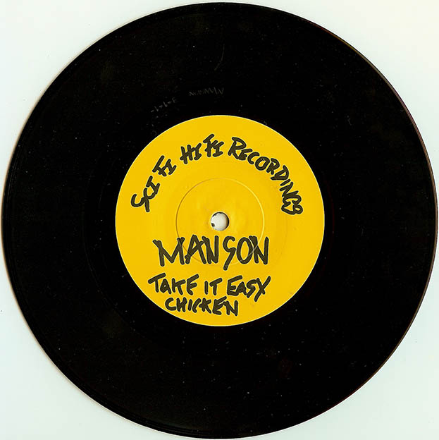 Revision as of 17:44, 6 May 2015 by DarkMavis (Talk | contribs) (Side A of the Take It Easy Chicken vinyl single.)