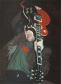 Paul's Les Paul Gibson started off with the Red/Black dual colour body that any Mansun fan will recognise, before the album Attack of the Grey Lantern was due to be released both him and fellow Guitarist Dominic Chad had both of their guitars covered in huge Purple rose styled stickers covering the guitar bodies entirely.